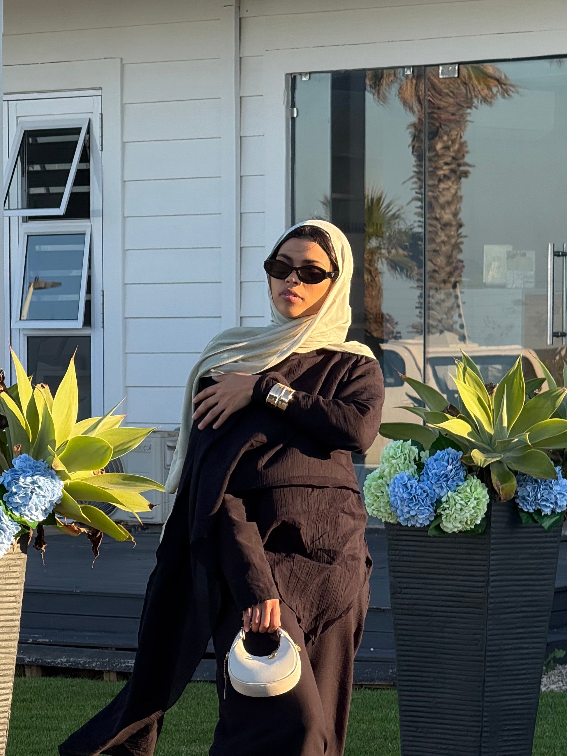 Where effortlessness meets sophistication. The Sahara Throw Top is a relaxed, asymmetrical piece that redefines timeless elegance. Featuring a beautifully stitched throw detail, this design adds a unique, elevated touch that’s inspired by the natural grandeur of desert dunes.